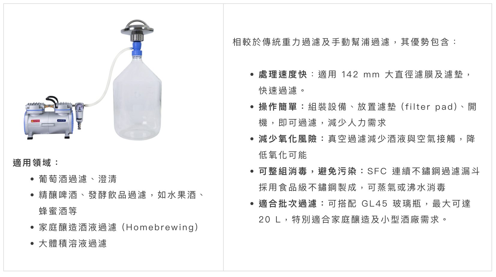 * 過濾并非葡萄酒制程之必要步驟,請(qǐng)依最終產(chǎn)品欲呈現(xiàn)之狀態(tài)適時(shí)執(zhí)行。